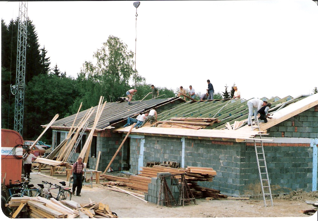 Das Schützenheim wurde fast vollständig in Eigenleistung erstellt, so dass der "Hebauf" bereits am 06. Juni 1992 zünftig gefeiert werden konnte.