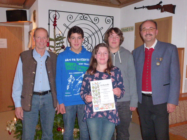 Beste Schülermannschaft vom SV Memhölz – von links: Bruno Brack, Julian Kiechle, Maria Jäck, Dominik Hieble, Karl-Heinz Bickel